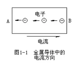 1、人们规定正电荷定向移动的方向为电流的方向。金属导体中,电流是电子在导体内电场的作用下定向移动的结果,电子流的方向是负电荷的移动方向,与正电荷的移动方向相反,所以金属导体中电流的方向与电子流的方向相反,如图1—1所示。